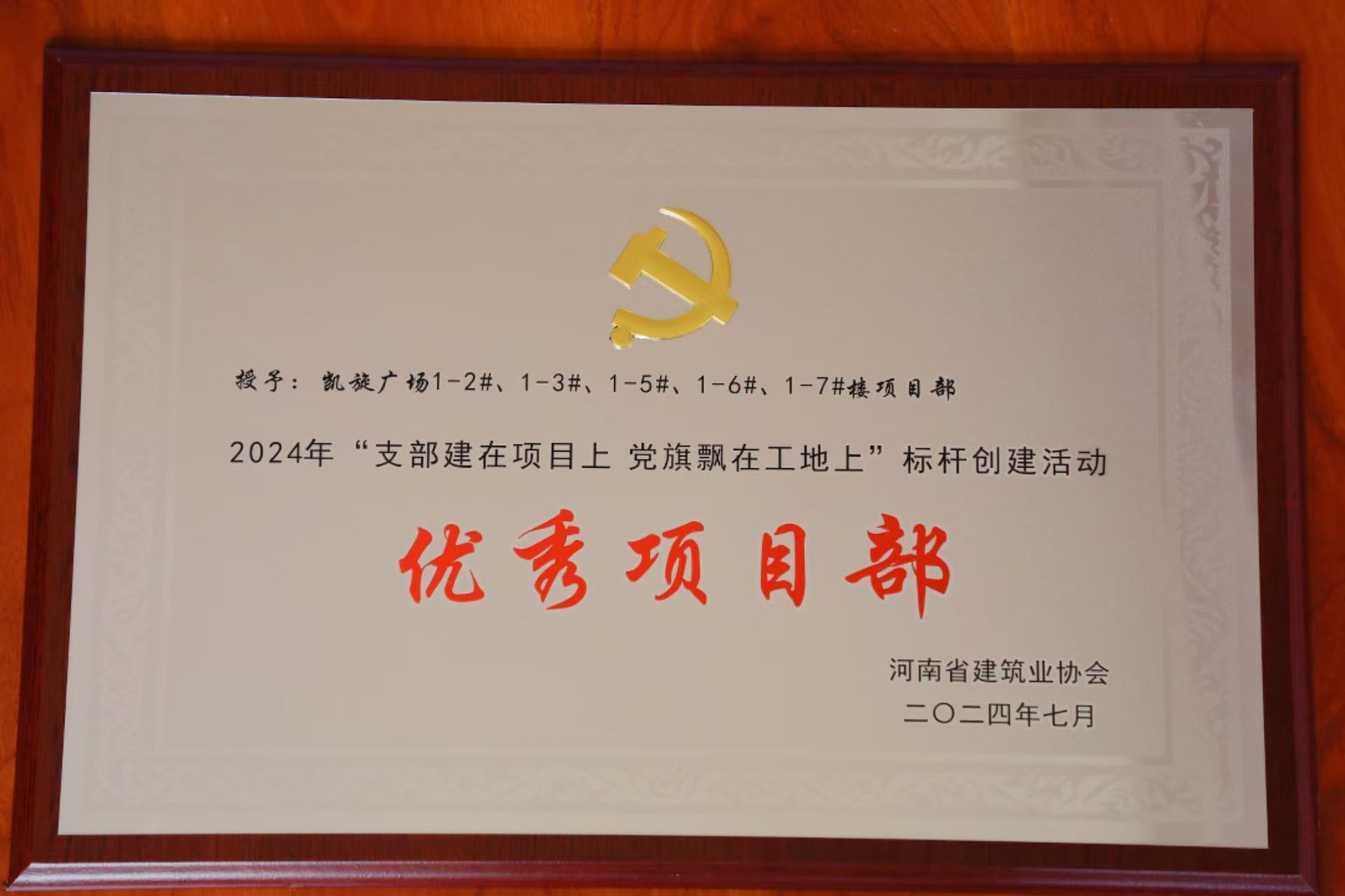 近日,河南省建筑業協會公布2024年度“支部建在項目上,黨旗飄在工地上”標桿創建評估結果公示的通知,鶴壁凱旋廣場1-2#、1-3#、1-5#、1-6#、1-7#樓項目部被評為“標桿創建活動優 秀項目部”。